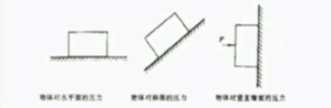 分析三種情況下物體對受力面的壓力大小與方向。