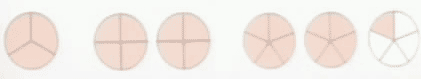 例題1 用分?jǐn)?shù)表示各圖的涂色部分,再比較每個(gè)分?jǐn)?shù)中分子和分母的大小。