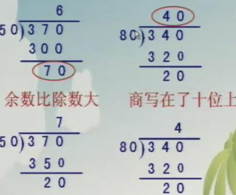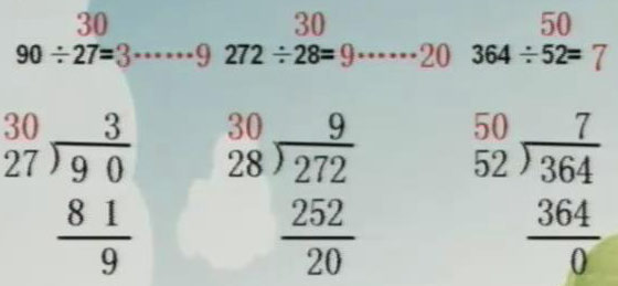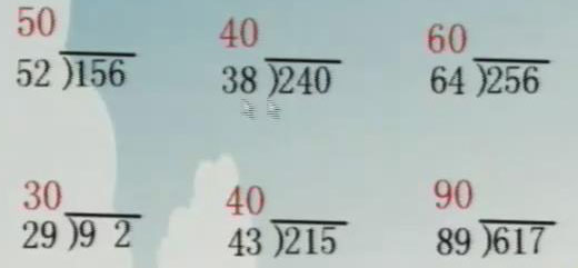 除數接近整十數的除法,試商時可以把除數看作與它接近的整十數,再試商