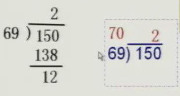 2.知道做三位數除以兩位數時,應用四舍五入法把除數看作整十數來試商