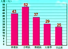 項目 | 秧歌隊 | 合唱隊 | 舞蹈隊 | 太極拳 | 書法班 |