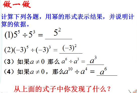 同底數(shù)冪相除,底數(shù)不變,指數(shù)相減