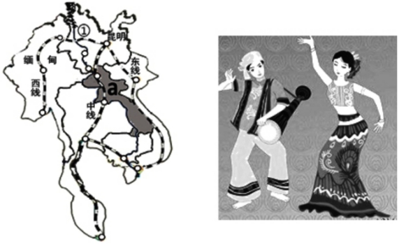 (2)河流①受云南的地勢影響,在云南境內(nèi)其流向?yàn)開_______,其流經(jīng)圖示云南少數(shù)民族聚居區(qū),這個民族的傳統(tǒng)節(jié)日是________。
