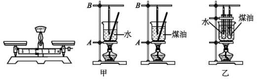 1.如圖甲所示是某小組同學(xué)探究“不同物質(zhì)吸熱能力”的實驗,將質(zhì)量相等的煤油和水分別裝在兩個相同的燒杯中,并測出煤油和水的初溫,然后用兩個相同的酒精燈加熱,每隔2 mim記錄一次溫度,實驗記錄如下表所示。 加熱時間/min 0 2 4 6 8 溫度/℃ 煤油 20 25 29 34 38 水 20 22 24 26 28