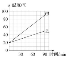(2)加熱 20 min,甲吸收的熱量_________(選填“大于”“小于”或“等于”)乙吸收的熱量。