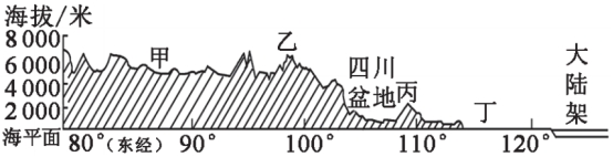讀我國北緯 32°地形剖面示意圖,完成9~10題。