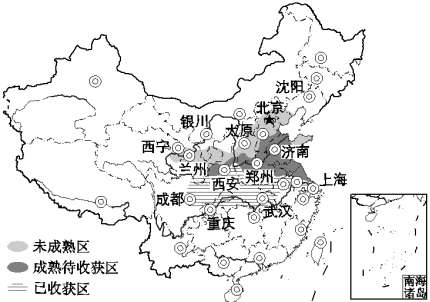 讀“我國某農作物主產區某年6月16日生長及收獲進程分布圖”,回答3~4題。
