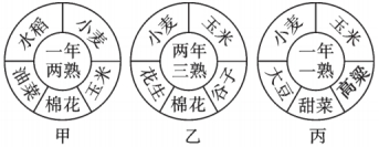 下圖示意我國三個地區作物熟制和主要農作物的結構。讀圖,完成9~10題。