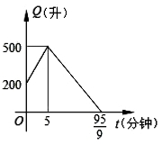 5.如圖,有一個裝有進、出水管的容器,單位時間內進、出的水量都是一定的,已知容器的容積為600L,又知單開進水管10min可以把容器注滿,若同時打開進、出水管,20min可以把滿容器的水放完,現已知水池內有水200L,先打開進水管5min,再打開出水管,兩管同時開放,直到把容器中的水放完,則正確反映這一過程中容器的水量Q(L)隨時間t (min)變化的圖像是:( )